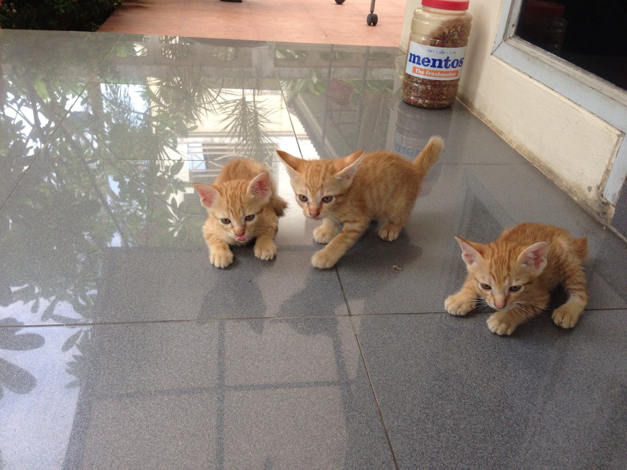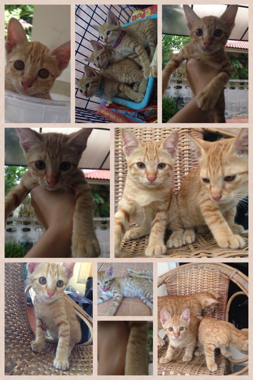 ลูกแมวสีส้ม3ตัว อายุประมาณ2เดือน ตัวผู้1ตัว ตัวเมีย2ตัว แม่แมวคาบมาทิ้งไว้ที่บ้าน แต่เลี้ยงไม่ไหวเพราะแมวที่บ้านมีเยอะแล้ว กินอาหารเม็ดได้ ใช้ถาดทรายเป็น ขี้เล่น อยากให้คนที่สามารถรับเลี้ยงได้ทั้ง3ตัว เพราะเวลามันอยู่ด้วยกัน3ตัวดูมีความสุขมาก