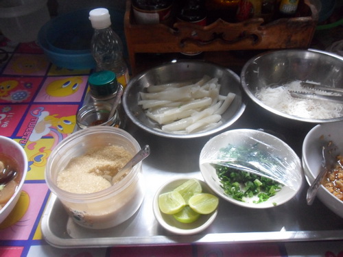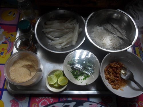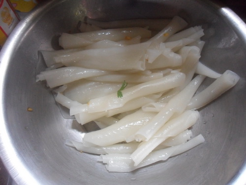 เล้นก้วยจั๊บ ลวกแล้วคลุกน้ำมันกระเทียมใว้