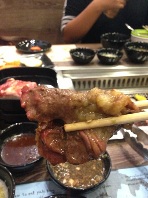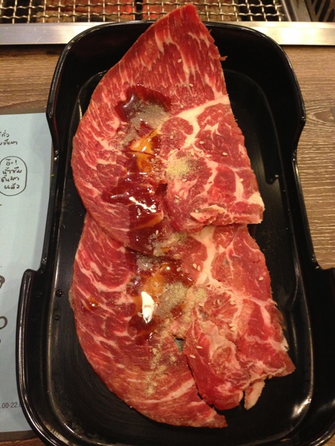 - อันนี้ผมจำไม่ได้ว่าเป็นเนื้อส่วนไหนครับ แต่วันนี้ที่ผมทานเมนูเนื้อนั้น ขอบอกว่านอกจากวากิวแล้ว เหนียวทุกจานครับ จะมีก้แต่เหนียวมากเหนียวน้อยหน่อยเท่านั้น แต่ละชิ้นให้มาชิ้นใหญ่มว้าก แต่คุณสามารถขอกรรไกรเขาได้ครับ
