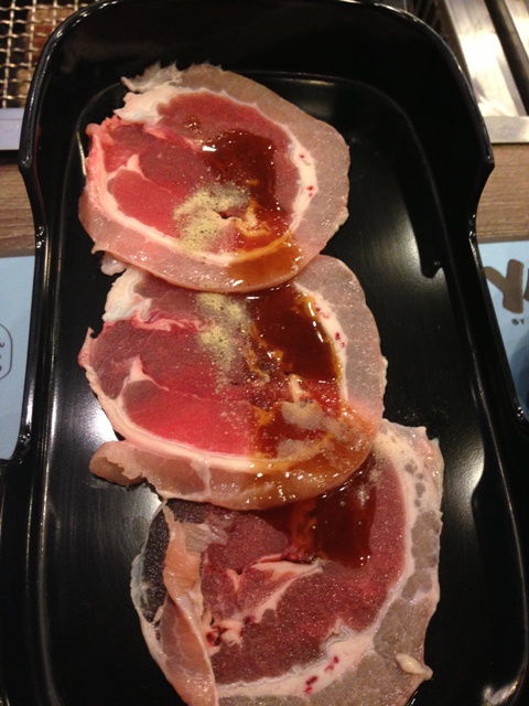 - สามชั้นคุโรบุตะ (หมูดำ) เนื้อนุ่มครับ ย่างให้มันละลายพอกรอบๆ ใช้ได้ครับสำหรับคนไม่ทานเนื้อ