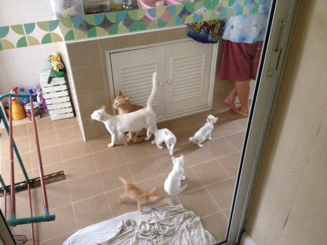 รบกวนหาบ้านให้แม่แมวและลูกๆ ครับ มีทั้งแมวเด็กและแมววัยรุ่นรวมๆ แล้ว 10 ตัว อยู่หมู่บ้านสี่ชัยทอง ซอย 3 แจ้งวัฒนะ 24 แถวเซนทรัลแจ้งวัฒนะ แถวนั้นมีร้านขายอาหารหลายร้าน เขาก็ไม่ชอบกัน แถมแมวซนจนคนแถวน