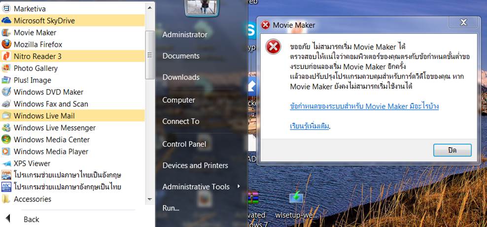 โปรแกรม movie maker ใน Window live essentials ไม่สามารถทำงานได้