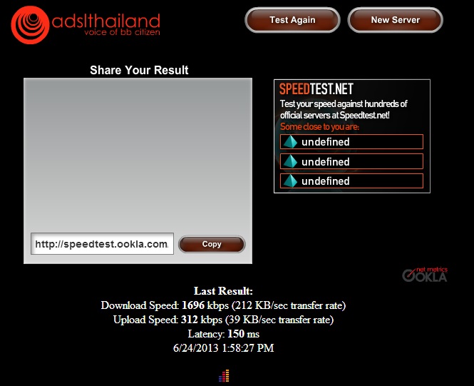 - เดือนก่อน กลางๆเดือนนี่แหละ คนที่บ้านบอกเน็ตเหมือนโดนลดสปีดลงเหลือ 5 กว่าๆ จาก 10m แต่ยังไม่แจ้งเพราะผมไม่อยู่บ้าน จะลองเทสดูก่อน แต่คนที่บ้านบอกพอเล่นได้ สัญญาณนิ่ง แต่ความเร็วสูงสุดตันที่ 5 กว่าๆ เลยปล่อยไปก่อน พอกลับมาบ้านลองเทสว่า ไม่ได้เป็นที่บ้านแน่ๆ เลยแจ้งไปทางทรู อีกสองสามวัน มีเบอร์มือถือที่ไม่รู้จักโทรเข้ามา เป็นของช่าง ให้ลองเปิดเร้าเตอร์เทสสปีด ก็โอเค กลับเป็น 10m เหมือนเดิม