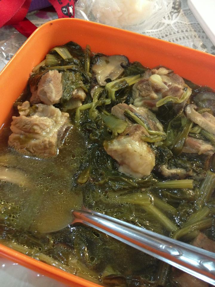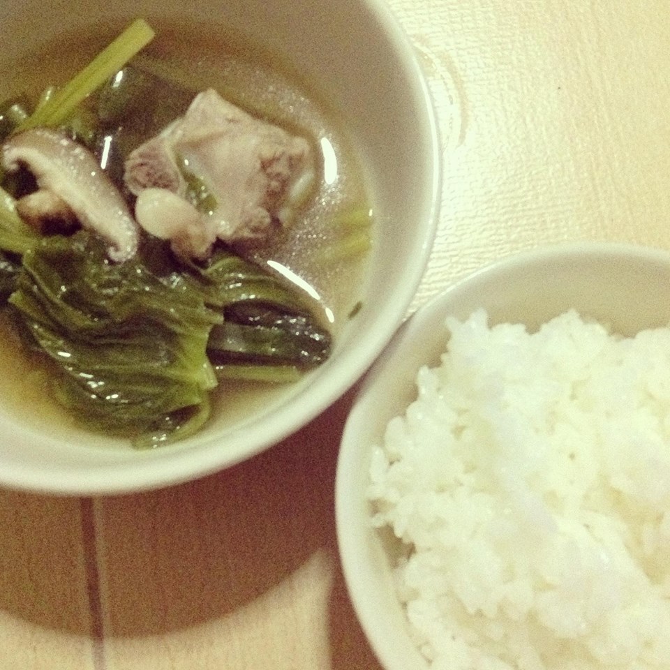 เมนูนี้ง่ายมากๆ เราใช้แค่ผักกวางตุ้ง กับเห็ดหอม แต่ถ้าอยากใส่ผักอื่นๆก็ลองเพิ่มเอาเองนะคะ หันผักและเห็ดหอม นำไปผัดกับซีอิ๋วขาวผัดให้ผักสลดซะหน่อย จากนั้นเทใส่หม้อต้ม ซึ่ง มีกระดูกหมูอ่อนต้มไว้ให้หมูเปื่อย ปรุงรสนิดหน่อย จากสูตรของแม่แฟนเก่าที่ได้มา เค้าไม่ใช้น้ำปลาานะคะ ใส่คะนอร์ 1 ก้อน ต้มไว้ให้เปื่อยทิ้งไว้ 1 คืน จากนั้นนำมาอุ่นแล้วรับประทานกับข้าวสวยร้อนๆคะ