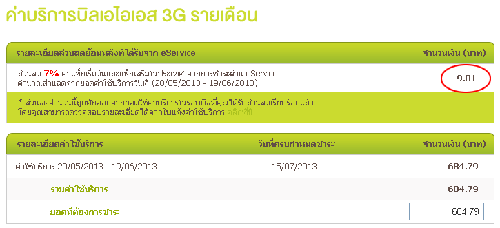 ล่าสุดที่ Call Center โทรมาชี้แจงบอกให้รอใบแจ้งค่าใช้บริการรอบบิลล่าสุด เพื่อเชคจำนวนส่วนลด 7% ที่มีปัญหา