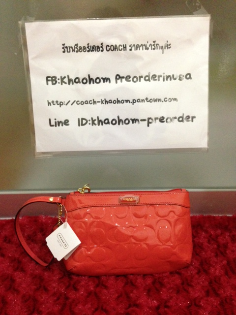 1.COACH Embossed Patent Leather Medium Wristlet PaPaya F47207