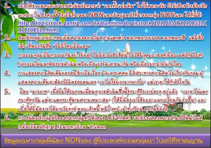 *******************รายชื่อสมาชิกชาว NONแดง (ผู้กล้าประกาศตัวว่าไม่เป็นคนเสื้อแดง)******************
