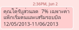 ไม่ได้รับส่วนลดค่าบริการรายเดือน 7% ตามที่ได้รับ SMS จาก AIS 3G ครับ