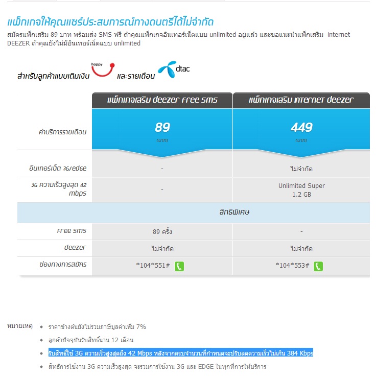 Dtac เคยมีโปร Dtac Deezer FUP 384 kbps