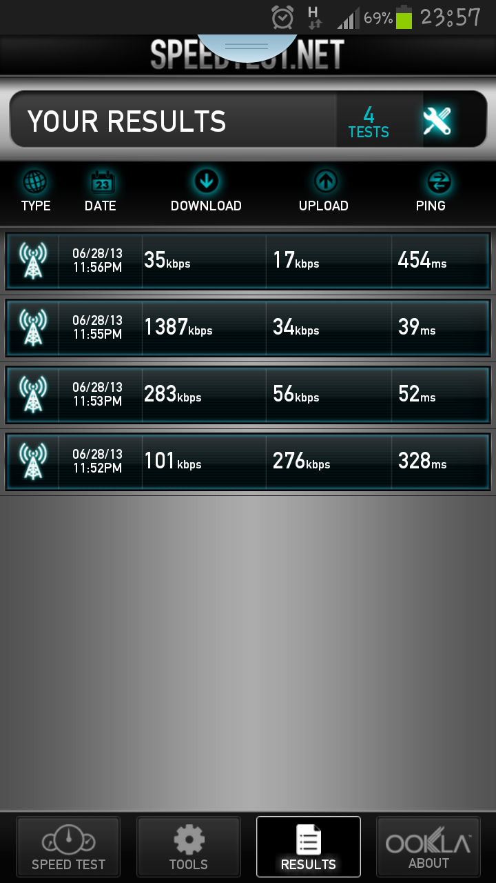 ตั้งแต่เปิดใช้มา 13 มิย 56 ความเร็วเป็นแบบนี้ตลอด ทนมาตลอดจนวันนี้ทนไม่ไหวแล้ว 3g ของคุณสวิงจนผมตาลาย เดี่ยว h+ เดี่ยวh เดีย่ว 3g สลับกันอย่างนี้อยู่ตลอดเวลาไม่เคยนิ่ง ไม่ว่าจะตั้งให้รับแต่ 3g หรือให้รับทั้ง 3 g 2 g มันก็สวิงแบบนี้ตลอด ความเร็วก็ได้แบบนี้ตลอด คุณจัดการแก้ไขให้ผมโดยด่วนนะเพราะผมทนไม่ไหวแล้ว ผมจะเทสแล้วเอามาประจานในpantip นี้อย่างต่อเนื่องจนกว่าจะได้รับการแก้ไขจากคุณ