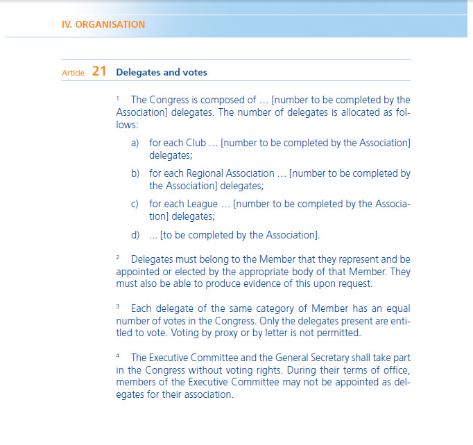 (ในแง่ของจำนวนผู้แทนซึ่งไม่ได้ให้สิทธิ์ผู้แทนของทุกทีมมีสิทธิ์โหวตในที่ระชุมใหญ่)