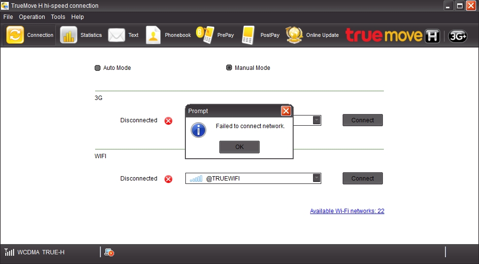 คือว่าเราสมัครเล่น wifi ของทรูมูฟเอช เดือนละ 100 เล่นไม่จำกัด แต่ปัญหาคือว่า สัญญาณเต็มแต่เชื่อมต่อไม่ได้ มันจะขึ้นสถานะว่า "กำลังเชื่อมต่อ truewifi........." รอนานมากแล้วมันก็บอกว่า หลีกเลี
