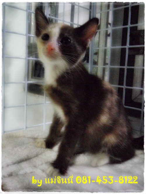 แม่จินนี่กลับมาอีกแล้วคะ มาขอบ้านที่ปลอดภัยกับแมวน้อย (เก็บมาจากข้างถนน) หวิดโดนรถบรรทุกทับตาย ช่วยไว้ได้ทันเวลา เป็น ดช. อายุประมาณ 2 เดือน สีขาว/ดำ นิสัยดี อ้อน ขับถ่ายในกะบะทรายเป็นแล้ว กินอาหารไ