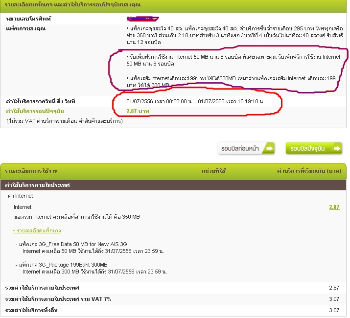 วันนี้...วันที่ 1/7/56 ผมมีจำนวนเน็ตฟรี จากการอัพเกรด 50 MB นาน 6 รอบบิล (รอบนี้เป็น รอบที่2 )