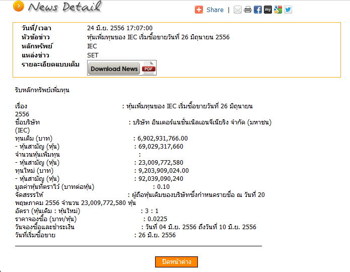 เกี่ยวกับหุ้นเพิ่มทุนของ IEC ไม่ทราบว่าจะเข้า port เข้าวันไหน ครับ?