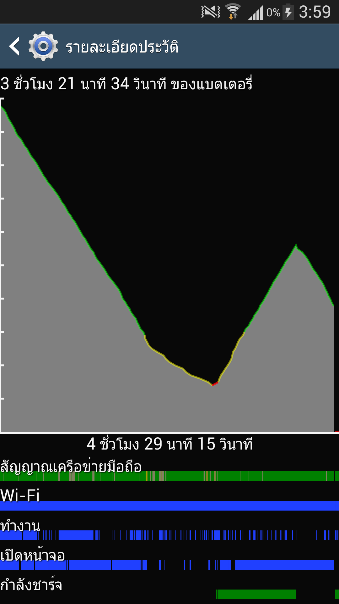 สังเกตดูจาก graph นะครับ มันไม่ได้ลงมาที่ 0 เปอรเซนเลย จู่ๆมันก็ดับไป พอเสียบ charge แบตมันก็เปิดมาบอกว่า 0 percent