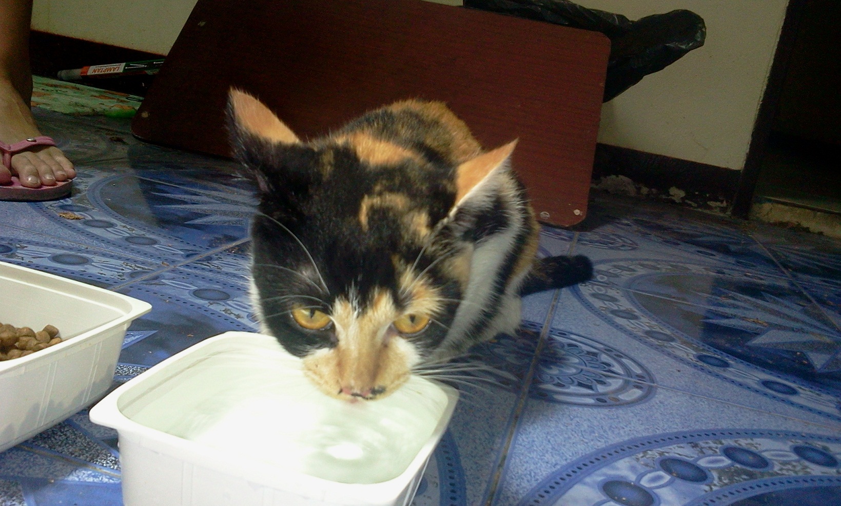 วันนี้เพิ่งเข้าไปเห็น สภาพ ผอม และหวาดกลัว ไม่สามรถถ่ายรูปชัดๆมาได้ แต่ยืนยันว่าน่ารัก เพราะเห็นมาตั้งแต่เป็นลูกแมว