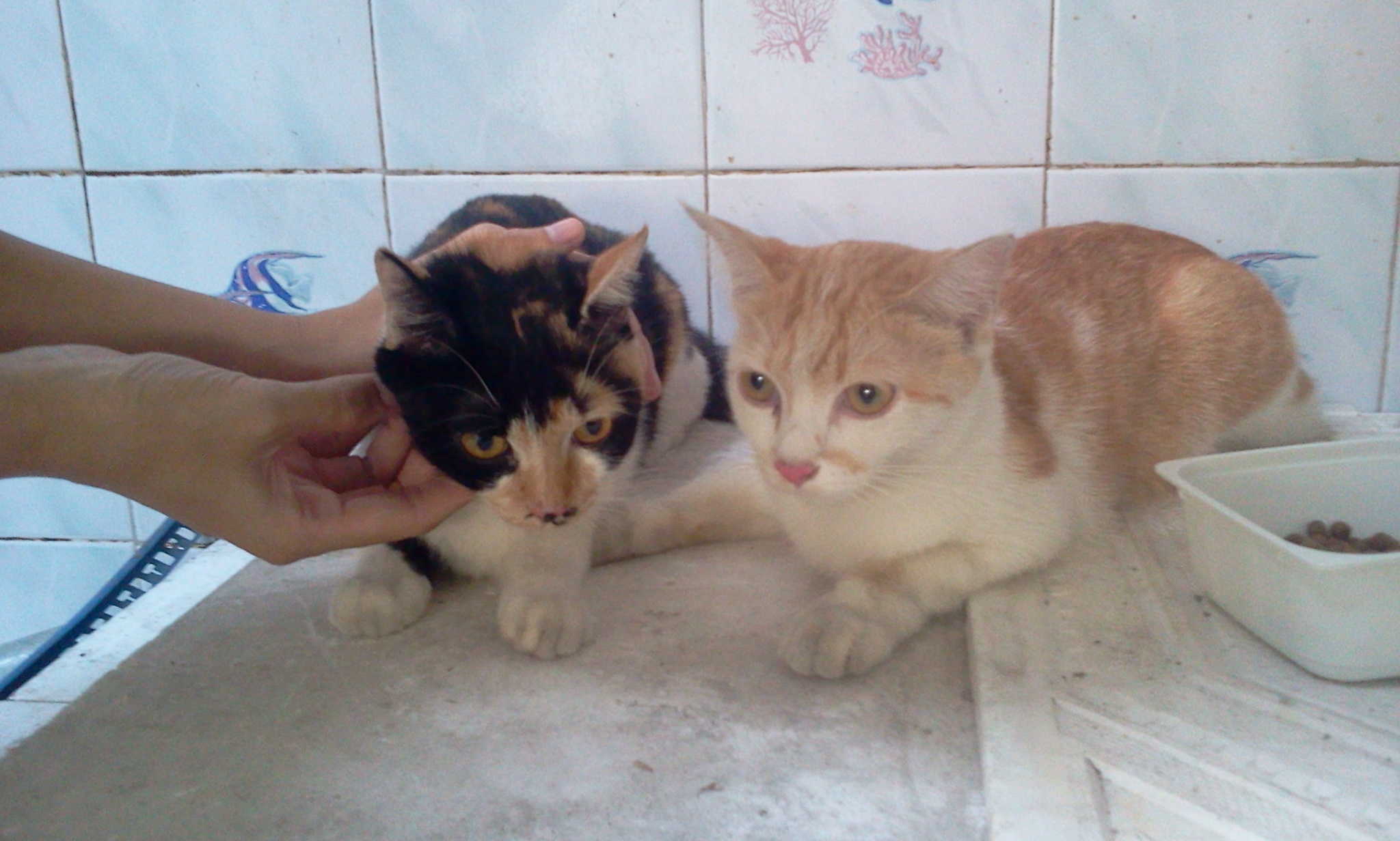 เป็นแมวลูกครึ่งเปอร์เซีย 2 ตัว สามสี กับสีขาวเหลือง อายุประมาณ 8-9 เดือน จขกท. เห็นมาตั้งแต่เป็นลูกแมว