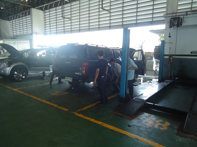 เอาล่ะครับ ผมก็ถาม ช่าง เลยว่ารอยมาจากไหนอ่ะครับ ช่างก็เดินมาดูทั้งศูนย์ซ่อมเลย