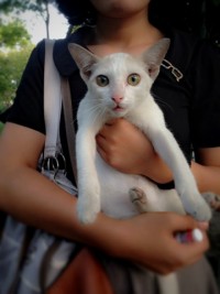เจอลูกแมวอายุประมาณ 2-3 เดือน เพศเมีย สีขาว แต้มสลิดเทา ถูกเอามาปล่อยแถวที่ทำงานค่ะ (แถวเสาชิงช้า เขตพระนครค่ะ) น้องเชื่องมาก วิ่งตามคนตลอดเลยค่ะ คนที่เฉยๆ ก็ไม่ว่าอะไร แต่คนที่ไม่ชอบก็โวยวาย เตะบ้างถีบบ้าง น่าเวทนาเด็กน้อย อยากให้มิ้วน้อยมีบ้านค่ะ ใครสนใจอุปการะติดต่อได้ที่เจี๊ยบ 088-009-9982 (น้องอยู่แถวเสาชิงช้า เขตพระนครค่ะ)