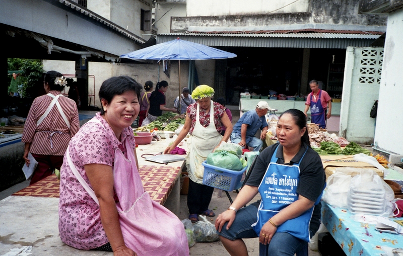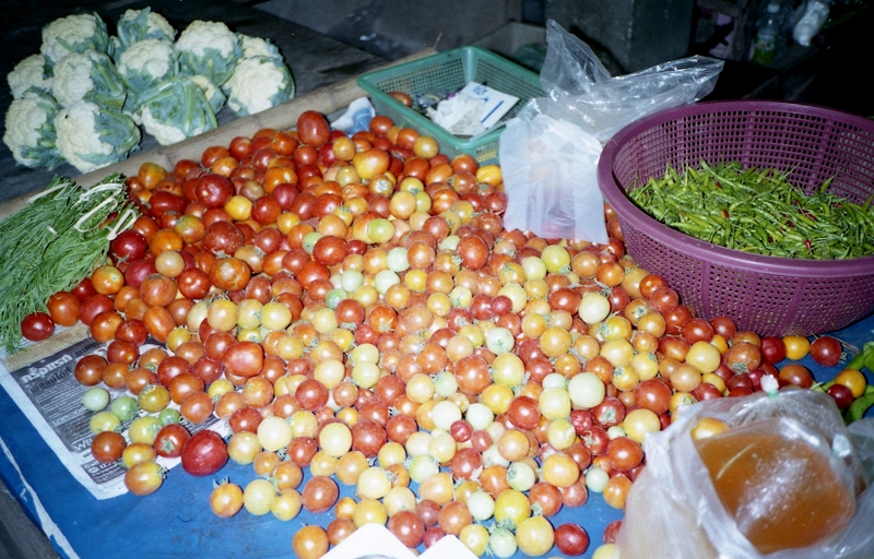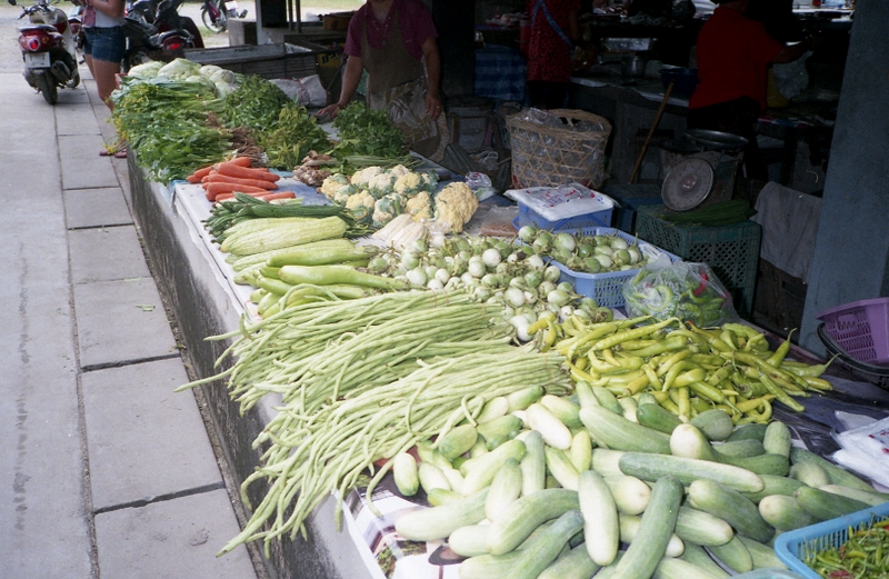 ยังคงเป็นตลาดแบบชนบท ทั้งๆ ที่อยู่ไม่ไกลจากตัวเมือง ผักสดกำละ 10 บาท