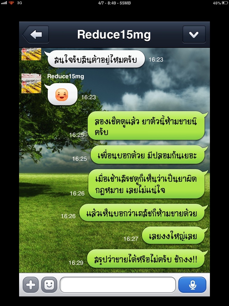 หลังจากที่ได้มีโอกาสคุยผ่านทางสื่อสังคมออนไลน์ของผู้ที่อ้างว่าขายยาทางอินเตอร์เน็ตโดยมีเภสัชกรควบคุม