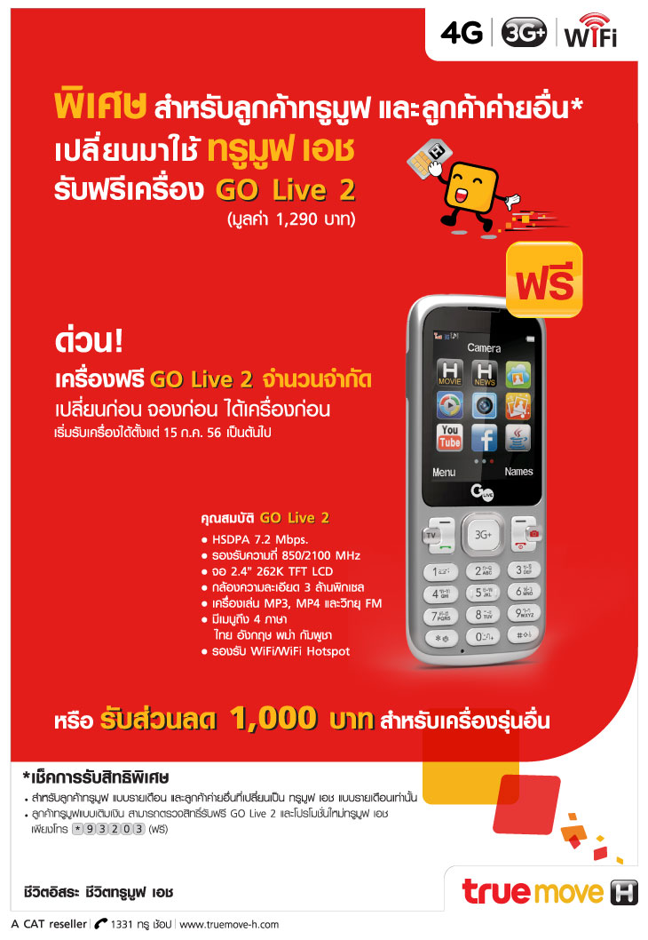 สวัสดีครับคุณครับใบจอง สิทธิพิเศษรับฟรีโทรศัพท์มือถือ Go Live รุ่น 2