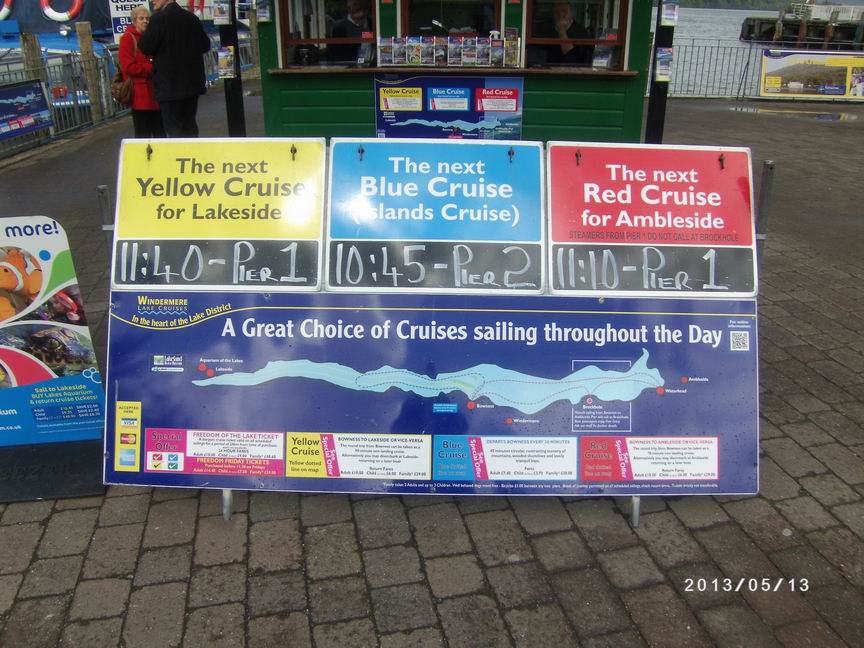 ไปล่องเรือเที่ยวทะเลสาบวินนาเมียร์ บรรยากาศดีพอสมควร แดดแรง ลมแรง อุณหภูมิ 10 องศา C มีฝนตก เรือมีออกเป็นรอบ ๆ