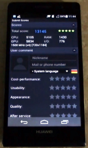 และคะแนนที่น่าประทับใจกับ Antutu ของ Ascend P6 ที่ 13145