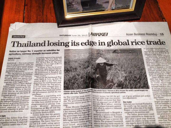 สื่อนอกตีข่าว ชาติอาเซียนขอบคุณจำนำข้าวไทย ช่วยส่งออกข้าวดีขึ้น??