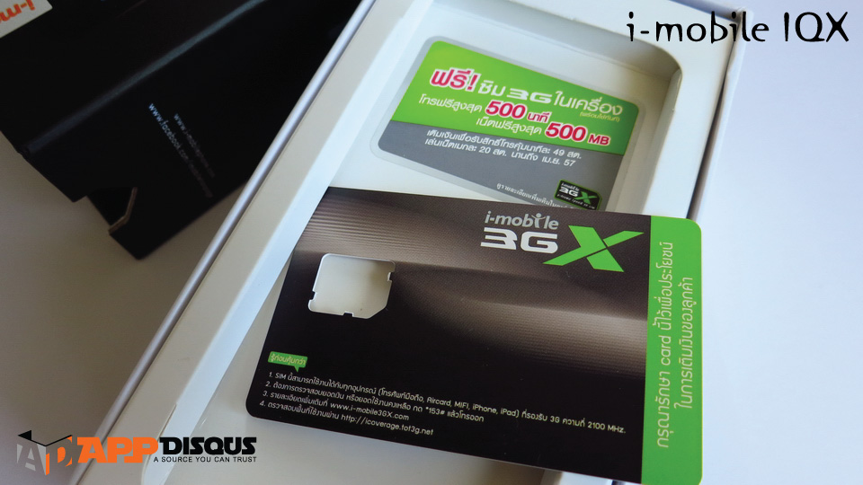 ในกล่องจะมีซิม i-mobile 3GX แถมมาให้ลองใช้กันด้วยครับ โปรโมชั่นก็ตามในภาพเลยฮะ