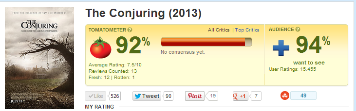 คะแนนหนังสยองขวัญ The Conjuring เริ่มออกมาแล้ว ดีตามคาด!!