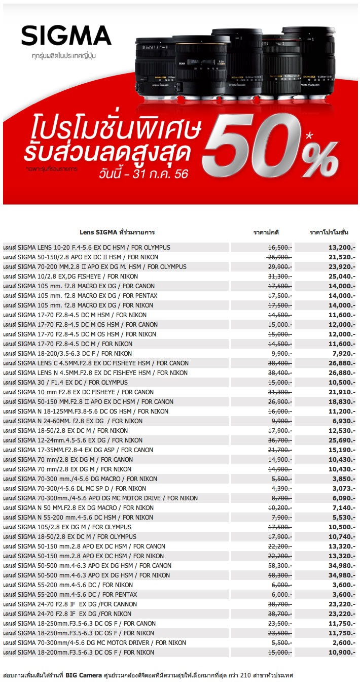 เอาโปร Big Camera เลนส์ Sigma ลดราคามาฝากค่ะ