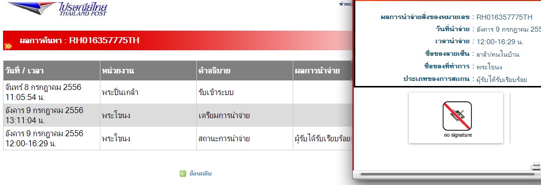 เช็คเลขพัสดุปณ. ems ขึ้นว่าไม่พบข้อมูล ทั้งๆที่เมื่อวานยังเช็คได้