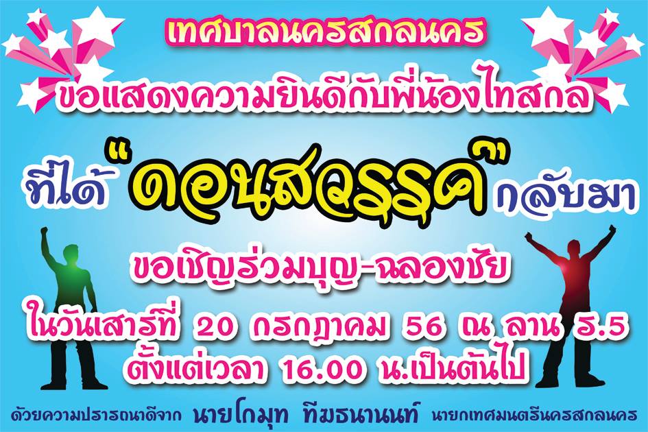ขอเชิญร่วมบุญ-ฉลองชัย "ที่ได้ ดอนสวรรค์กลับมา" โดยเทศบาลนครสกลนคร