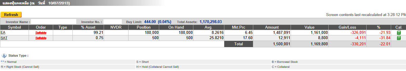 ผมขอบอกว่า ผมเข้าใจ และก็คิดว่าความรู้สึกของผมก็คงไม่ต่างจากหลายๆท่าน ยอมรับว่าผมเครียดมาก แต่ถ้าถามว่าผมท้อมั้ย ผมถอยมั้ย "ผมขอบอกว่าผมไม่ท้อและไม่มีทางถอยครับ" และผมจะอยู่ในตลาด(ห)ลักทรัพย์นี้ไปอีกนานเท่านาน