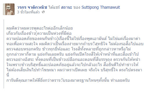 ให้ข้อมูล ไม่ให้คนไทยซื้อข้าวถุงมารับประทาน