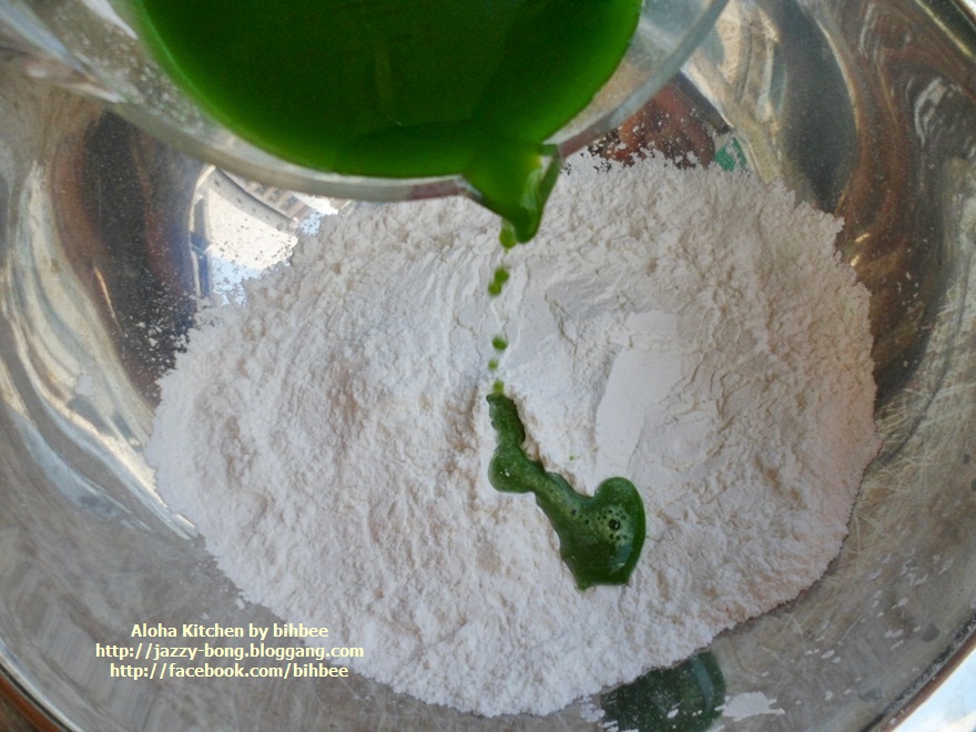 ถ้าแป้งเหลวให้เพิ่มแป้ง ถ้าแห้งไปใส่น้ำใบเตยเพิ่มไป