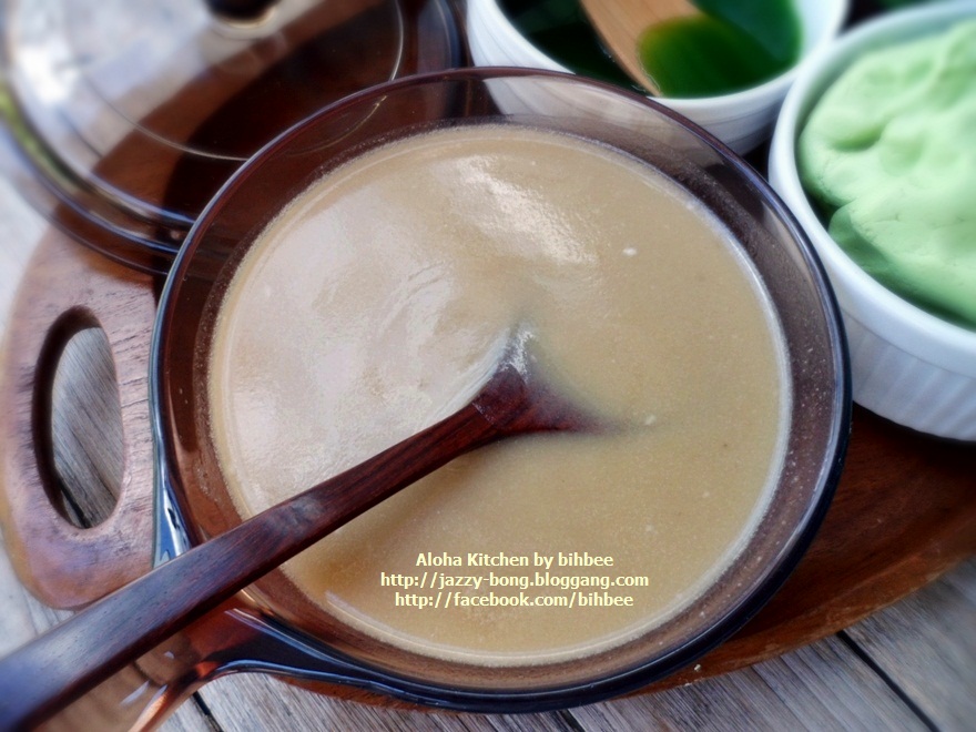 ใส่น้ำกะทิน้ำตาลโตนด ใส่เนื้อมะพร้าว / เผือกต้ม / ข้าวโพดต้ม