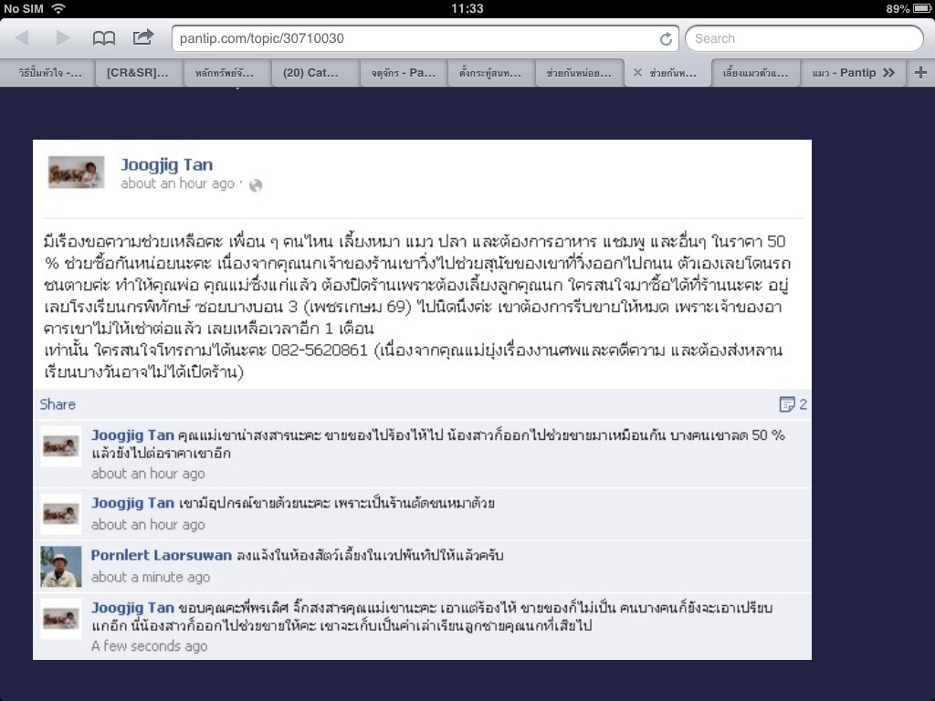ใครที่เลี้ยงสุนัข แมว ปลา ขอช่วยหน่อยค่ะ (เจ้าของร้านอาหารสัตว์ถูกรถชนตายเนื่องจากไปช่วยสุนัขของตนเองที่ถนน)