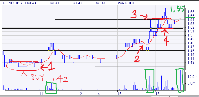 เวลาผ่านไป...ตกลงจุด4 รับอยู่เลยไม่ปล่อย แถมปิดตลาดเด้งปิดที่ 1.55 อีก (โชคดีสุดๆ)