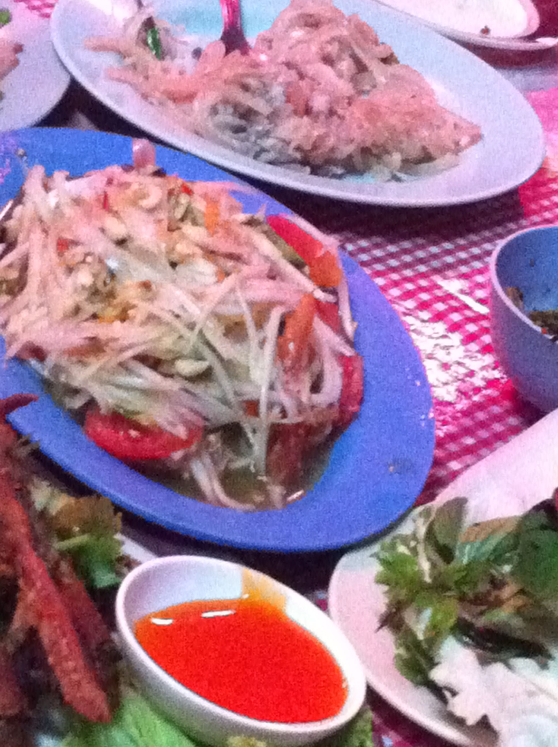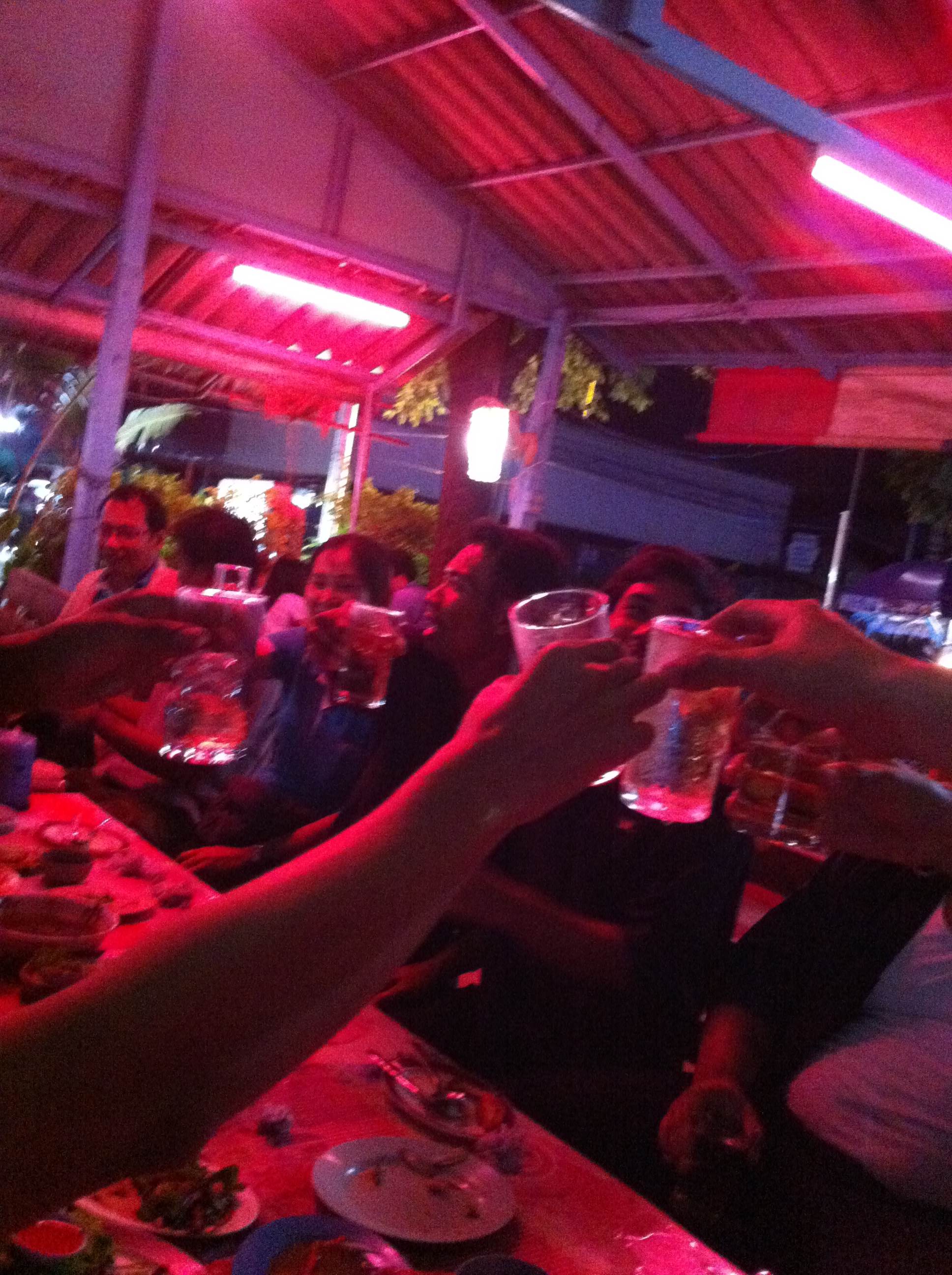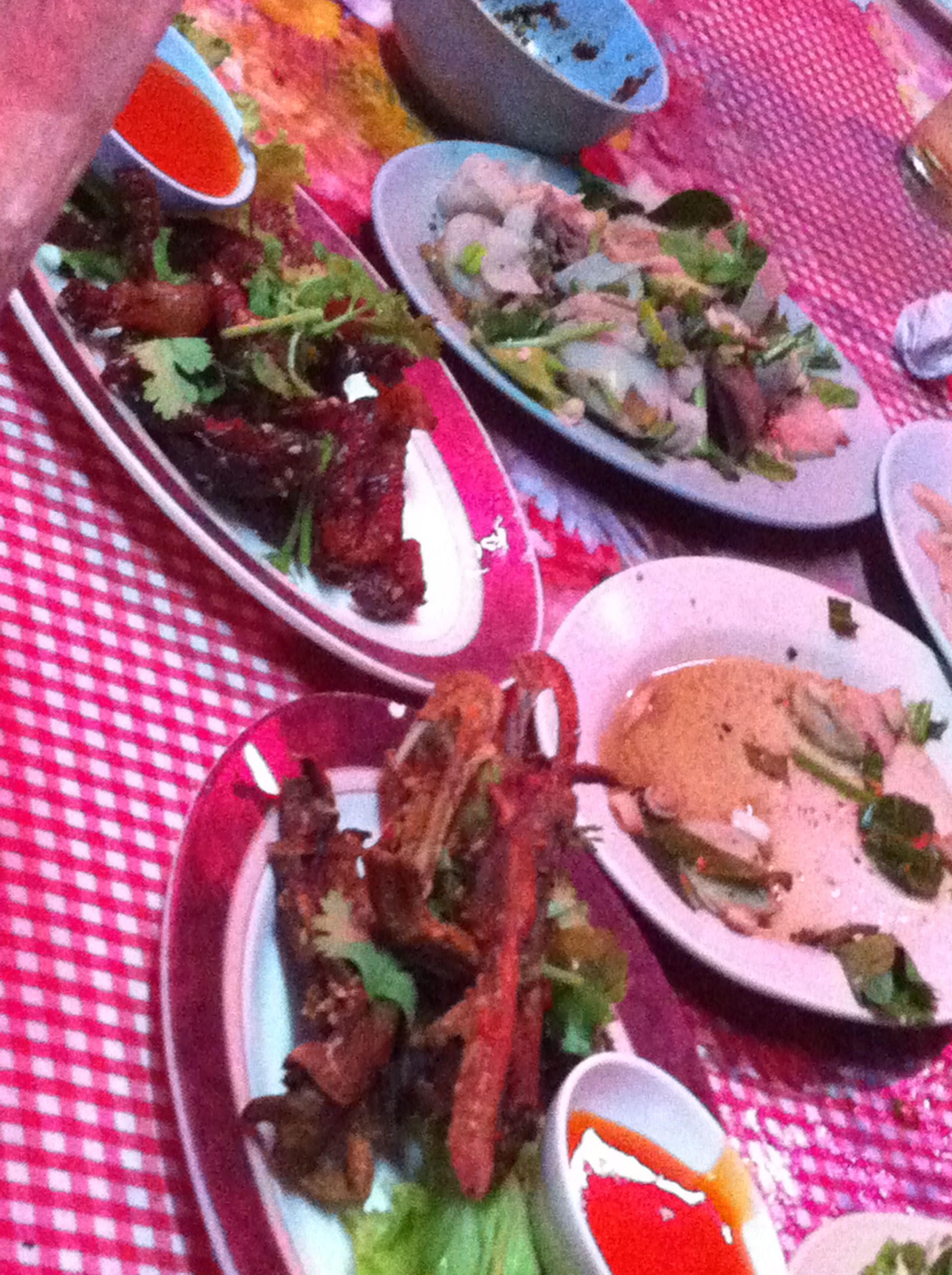 หลังจากนั้นก็สั่งหลายอย่างค่ะ พวกลาบ ผ้าขี้ริ้วลวกจิ้ม ยำแหนม แต่ว่ามืดแล้ว. ถ่ายภาพไม่ได้คา่ะ อหารส่วนใหญ่เป็นพวกกับแกล้มค่ะ ว่าแล้วก็ คัมปายยยย ค่ะ