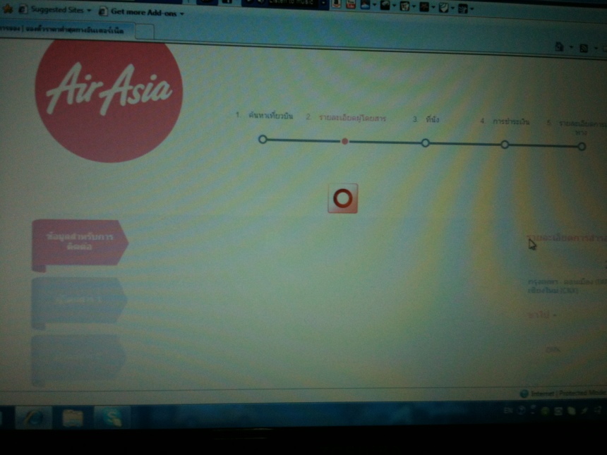 เรื่องของเรื่องคือไม่เคยจองเที่ยวอะไรแบบนี้ครับ พอดีว่า Air Asia กำลังมีโปรฯ เมื่อซักครู่ ได้กดจอง ตั๋ว+ที่พัก ไป หลังจากกดคำว่า "จองให้เสร็จสมบูรณ์" หน้าจอก็ค้าง หมุนติ้วๆไปเป็นนาทีเลยครับ