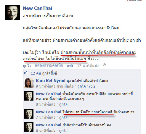 แผนให้ "ดาวแดง" อุดประตูกระทรวงกลาโหม เพื่อไม่ให้นายกฯ ปู เข้าได้ "ดาวแดง" ไม่ยอมทำ ไชยวัฒน์ แถ-ลง ประกาศยุติเวทีที่ท้องสนามหลวง ช่อง 13 สยามไท เลิกถ่ายทอดสด แจ้งว่านายทุนไม่