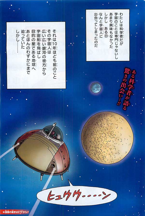 เปิดตอน บรรยายจากคนๆหนึ่งที่บอกว่าตัวเองอาจจะเป็นนักวิทยาศาสตร์แต่ก็ไม่ได้พิเศษอะไรไม่มีบทความอะไรเป็นที่น่าสนใจเลย แต่วันหนึ่งก็บังเอิญเจอกับมนุษย์ต่างดาว ซึ่งเป็นเรื่องเมื่อ 10 ปีก่อน มนุษย์ต่างดาวมาจากอีกมุมของมุมแกแลคซี่ เดินทางมาด้วยยานอวกาศของตัวเองมายังดาวจุดหมายและ....