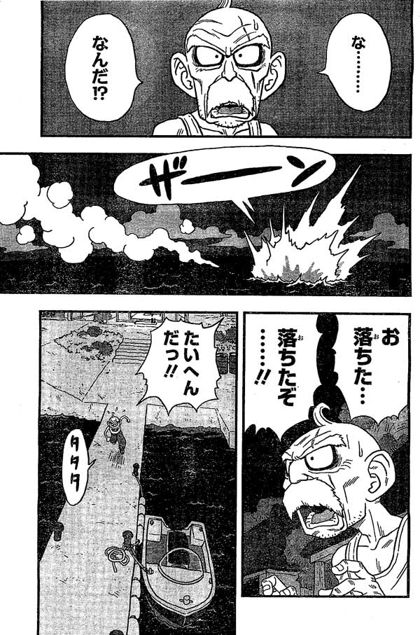 พอกำลังงงว่าคืออะไรนั้นเองสิ่งนั้นก็ตกทะเลไปแล้ว พอตาแก่เห็นว่าตกไปแล้วก็เห็นว่าดูไม่ค่อยดีเลยรีบมาที่ท่าเทียบเรือ