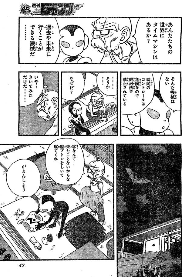 ว่าดาวของแพโทรลแมนมีไทม์แมชชีนรึเปล่า หรือของที่สามารถเดินทางข้ามเวลาไปอดีตหรืออนาคต แพโทรลแมนบอกของแบบนั้นไม่มีอยู่หรอกเพราะการควบคุมเวลามันอันตรายและเป็นกฎข้อห้ามของแกแลคติค ตาแก่ก็บอกงั้นเหรอ พอแพโทรลแมนถามว่าถามทำไมตาแก่ก็บอกก็แค่อยากรู้ พอถึงเวลานอนตาแก่บอกเขาไม่เคยมีแขกมาก่อนเลยให้แพโทรลแมนจัดการตัวเองแล้วกัน แพโทรลแมนก็ตกลง