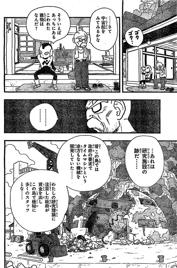 พอกินข้าวเช้ากันแล้วโอโอโมริก็คิดว่าได้เวลาไปดูยานให้แล้ว แต่จาโกะถามก่อนว่าตึกตรงนั้นคืออะไร โอโอโมริดูเหมือนไม่อยากพูดถึงแต่ก็บอกว่าเป็นซากของห้องทดลอง เมื่อก่อนเกาะนี้เคยเป็นศูนย์วิจัยเพื่อศึกษาการเดินทางข้ามเวลาของรัฐบาล พวกรัฐบาลก็ให้เงินทุนกับทฤษฎีของโอโอโมริและจัดสถานที่และสต๊าฟให้