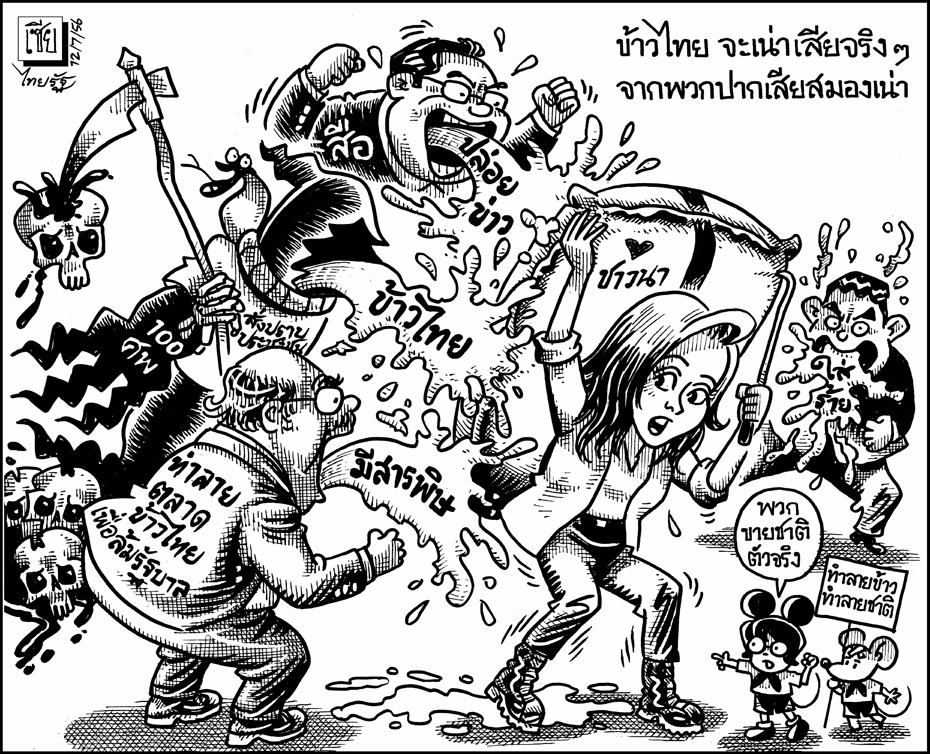 หรือ " เรากำลังทำร้ายชาวนา เพื่อจะทำลายรัฐบาล" ช่วยตั้งสติ พิจารณา เอาความเดือดร้อนของ "คนเลี้ยงแผ่นดิน" เป็นที่ตั้ง เราจะช่วยชาวนาไทยอย่างไรได้ ก็ต้องช่วยเหลือกัน หยุดเรื่อง ผลปร
