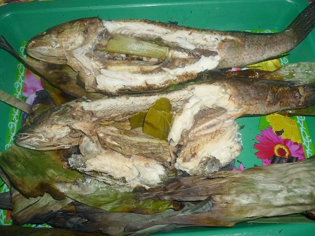 ใช่ค่ะ ปลาช่อนนา ผ่าท้องทำให้สะอาด แล้วทาเกลือนิดๆ ห่อใบตองย่าง ย่างกันดื้อๆแบบนี้แหละ 5555